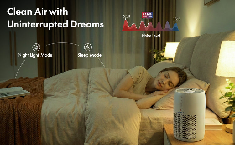 Ans: No, this air purifier operates at approximately 50dB and includes a dedicated sleep mode for quieter room air purification at night. This makes it a suitable air home purifier for bedrooms, study areas, and other quiet indoor spaces.